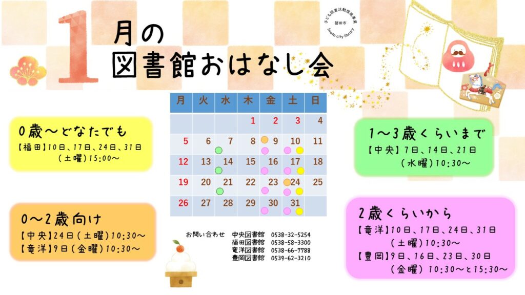 新年も、絵本の読み聞かせ、手あそび・わらべうたで楽しいひとときを過ごしましょう。