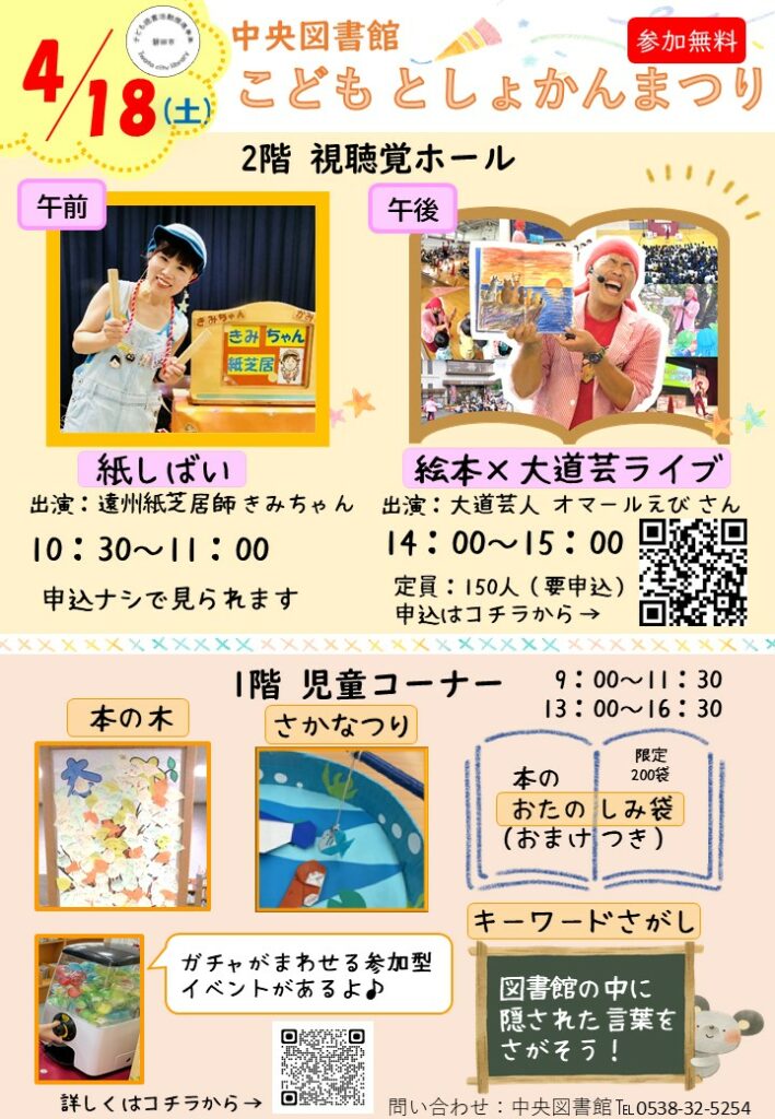 こどもとしょかんまつり チラシのPDFはこちら⇒こどもとしょかんまつり(PDFファイル:657KB)