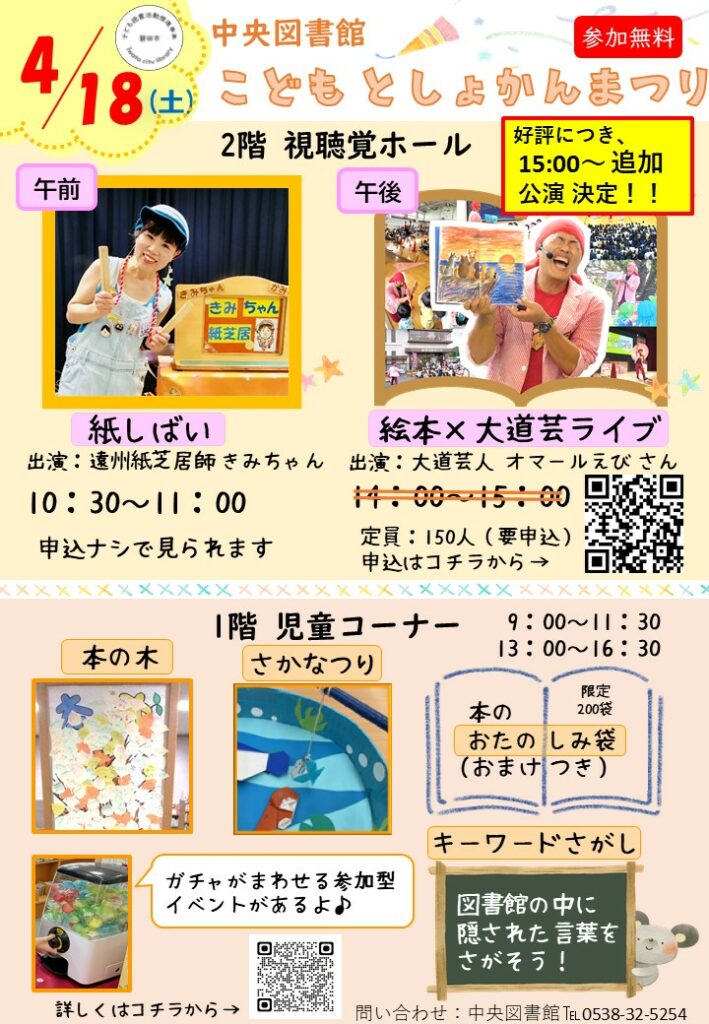 こどもとしょかんまつり チラシのPDFはこちら⇒こどもとしょかんまつり(PDFファイル:722KB)