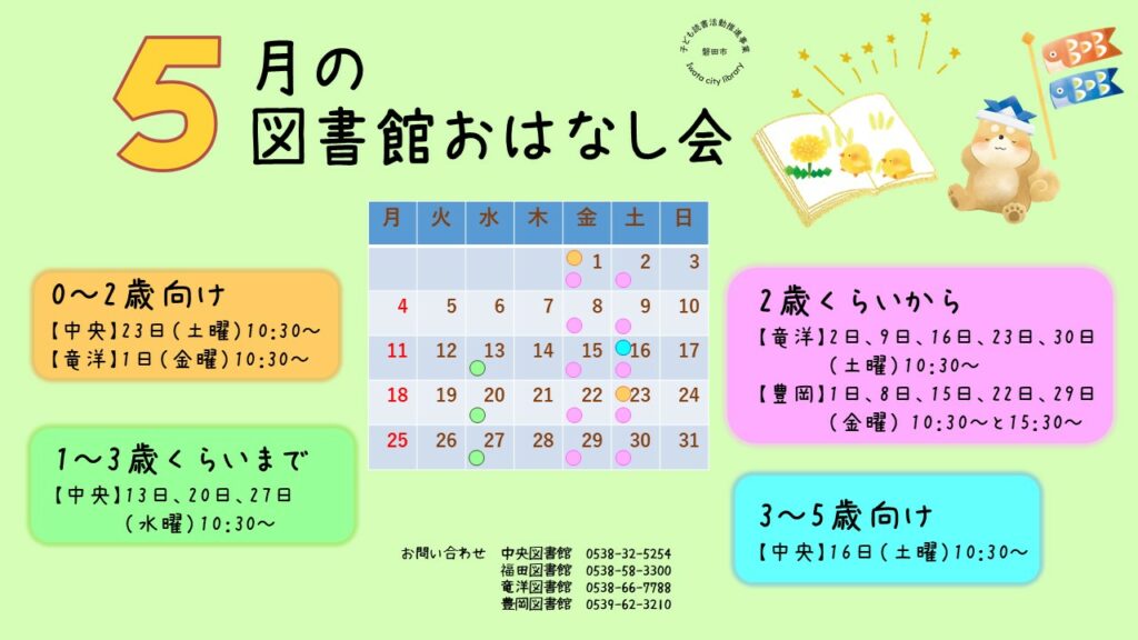 【豊岡】1日、8日、15日、22日、29日(金曜)10時30分からと15時30分から
